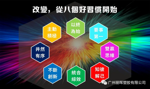 堅持理想的代價一定會很辛苦,但我們一定要改變才能成長,去年我們並沒有成就輝煌,今年我們一定要更努力,成功的《八個好習慣》將是我們成長的動力,請大家一起養成八個好習慣,邁向成功再造輝煌。